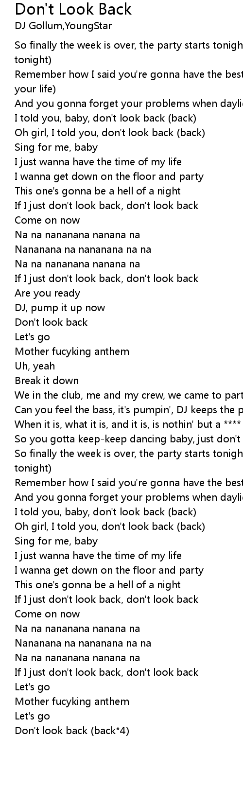| [02:25.449] | I told you, baby, don't look back (back) |