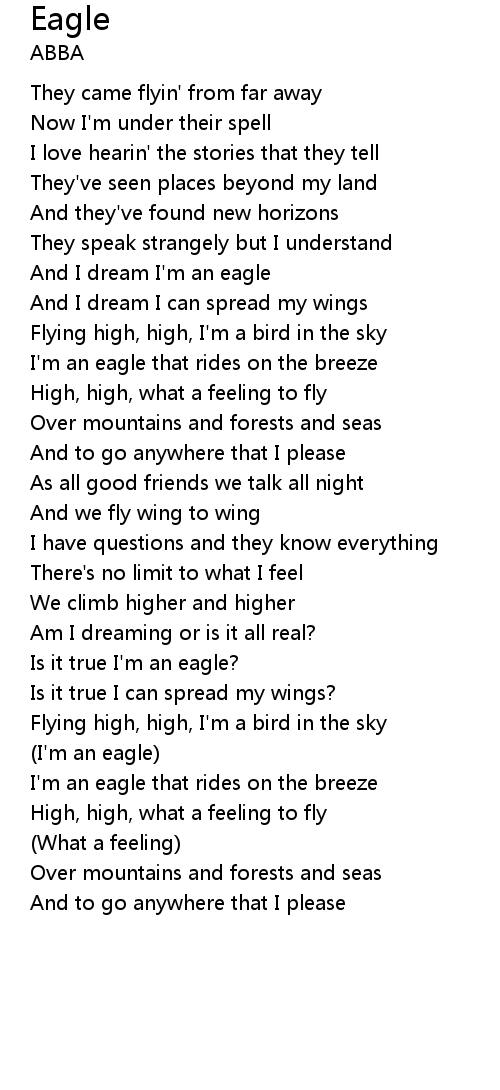 And I dream I'm an eagle |