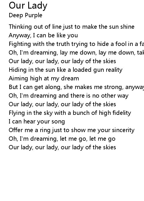 Our lady, our lady, our lady of the skies |