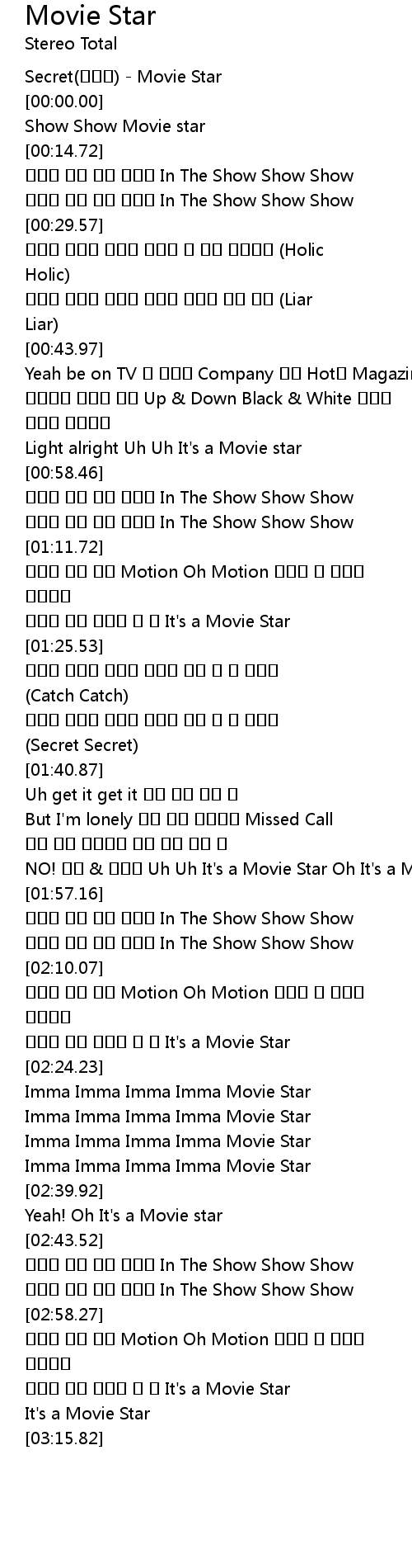 | [02:36.59] | Imma Imma Imma Imma Movie Star |