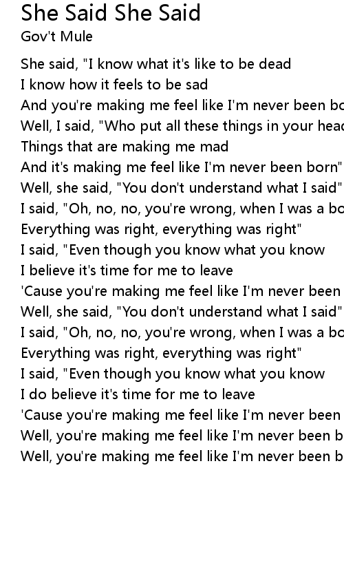 And you're making me feel like I'm never been born" |