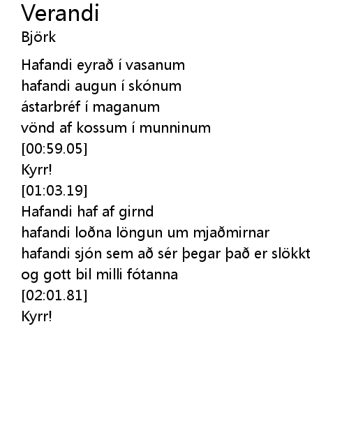 | [00:11.34] | Hafandi eyra i vasanum |