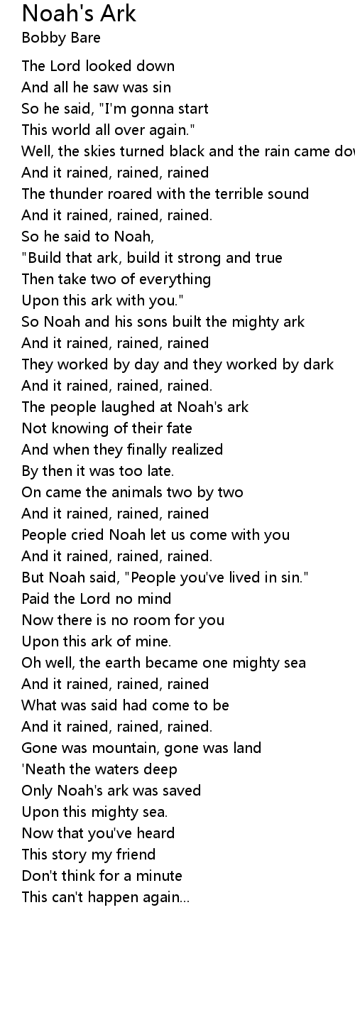"Build that ark, build it strong and true |