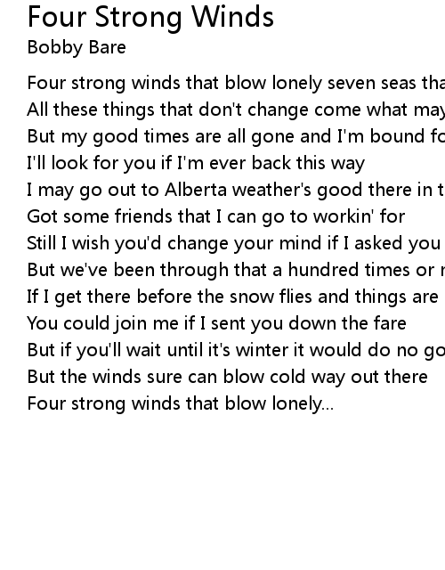 Four strong winds that blow lonely... |