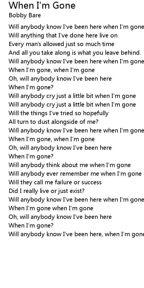 When I'm gone when I'm gone |
