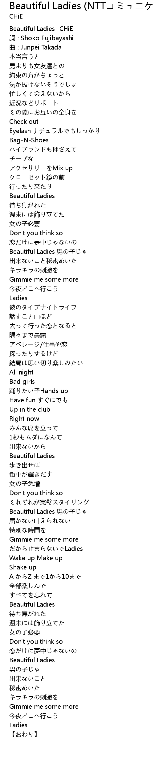 | [00:00.500] | Beautiful Ladies -CHiE |