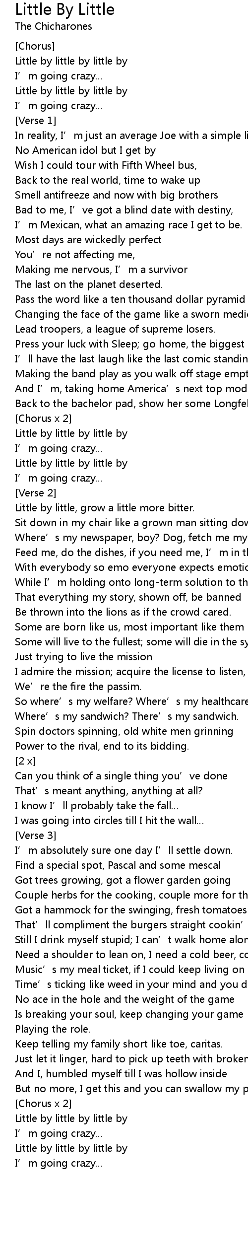 | Time' s ticking like weed in your mind and you don' t get it. | |