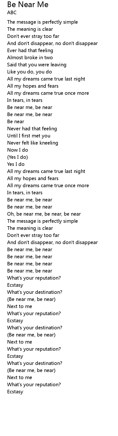 Be Near Me Lyrics