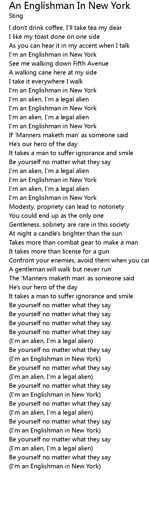 (I'm an Englishman in New York) |