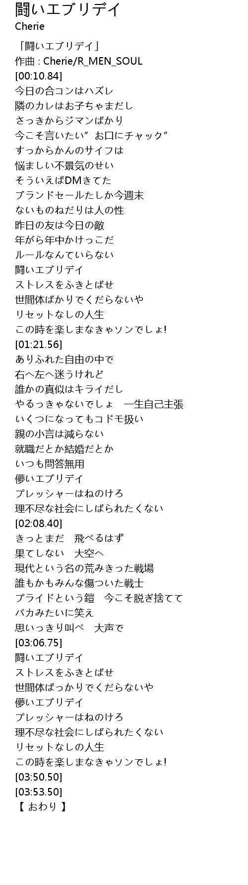 | [00:02.84] | 「闘いエブリデイ」 |