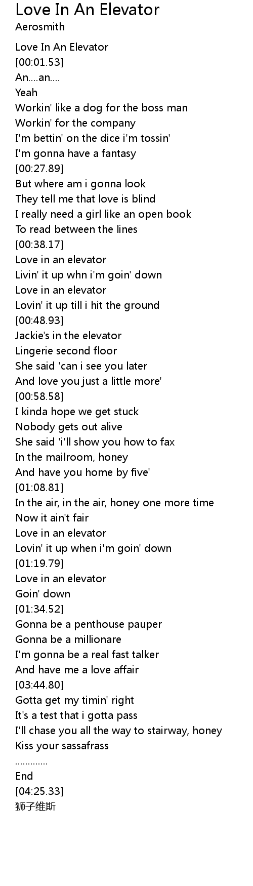 | [00:38.83] | Love in an elevator |