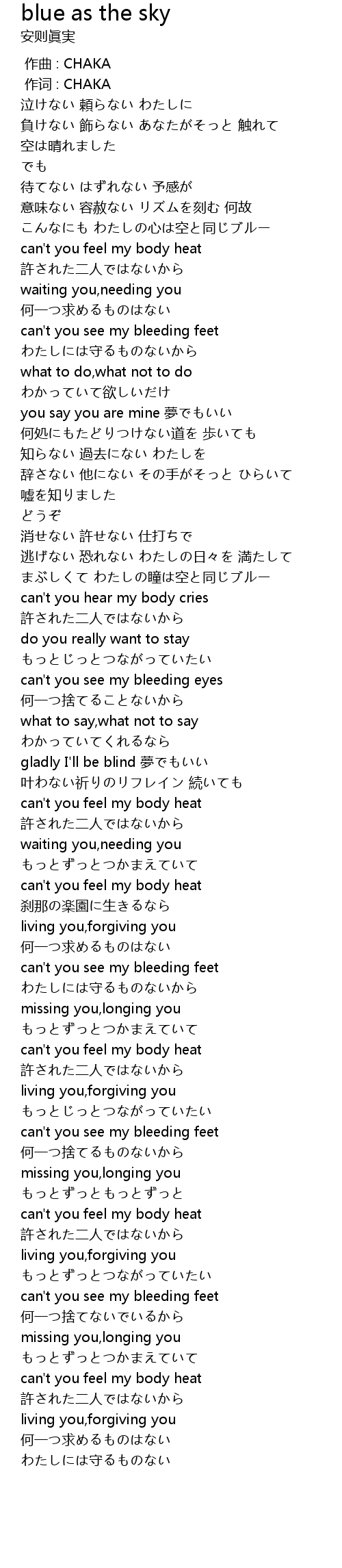 | [01:08.38] | こんなにも わたしの心は空と同じブルー |