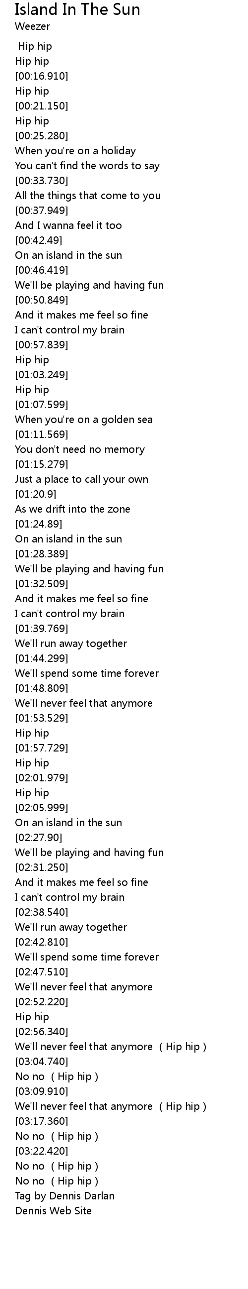 | [02:23.850] | On an island in the sun |