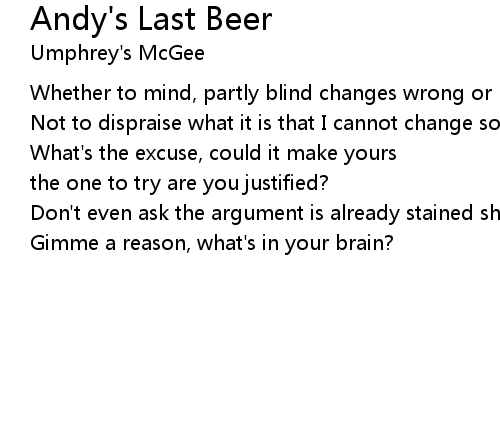 | Song | Andy's Last Beer |
