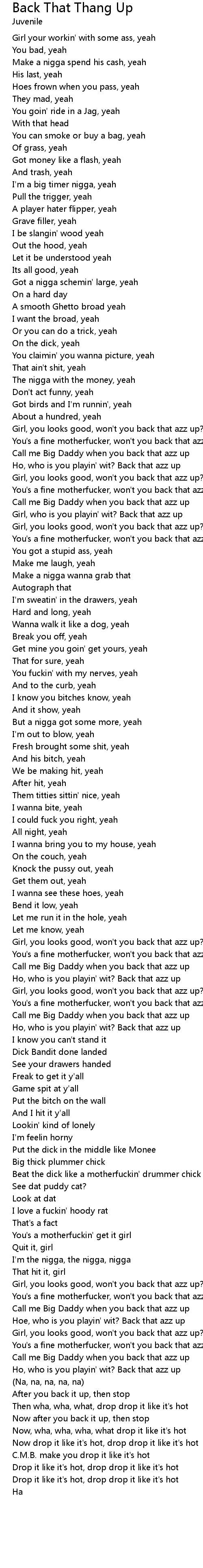Girl, who is you playin' wit? Back that azz up |