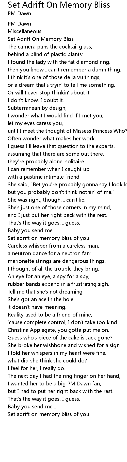 Set Adrift On Memory Bliss |