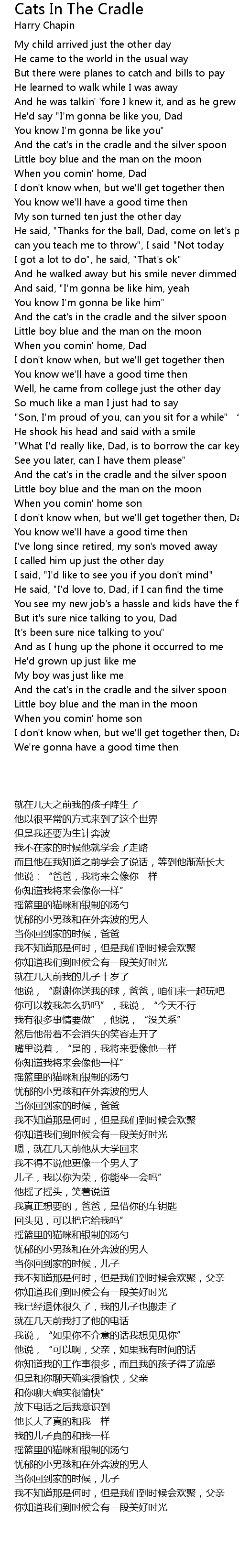 | [00:35.69] | And the cat' s in the cradle and the silver spoon |