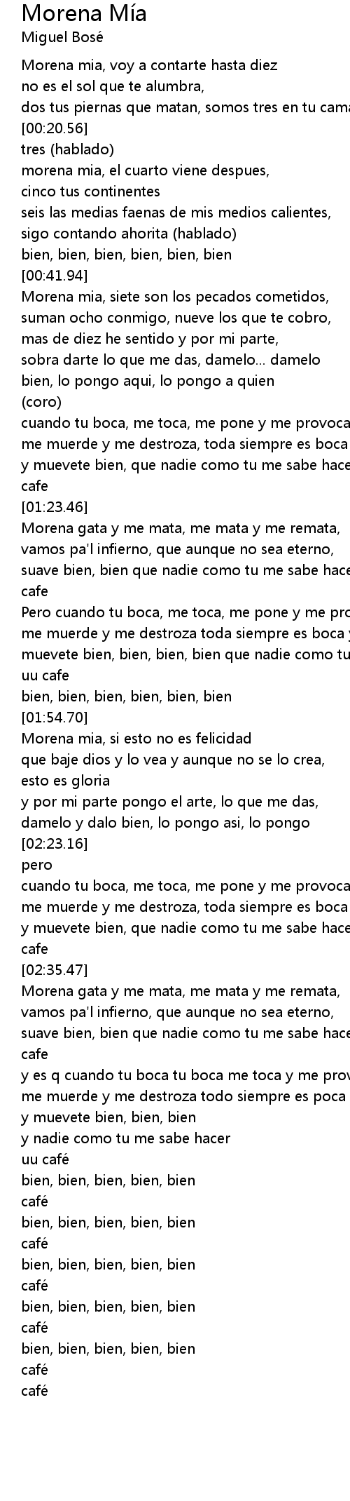 | [00:23.60] | morena mia, el cuarto viene despues, |