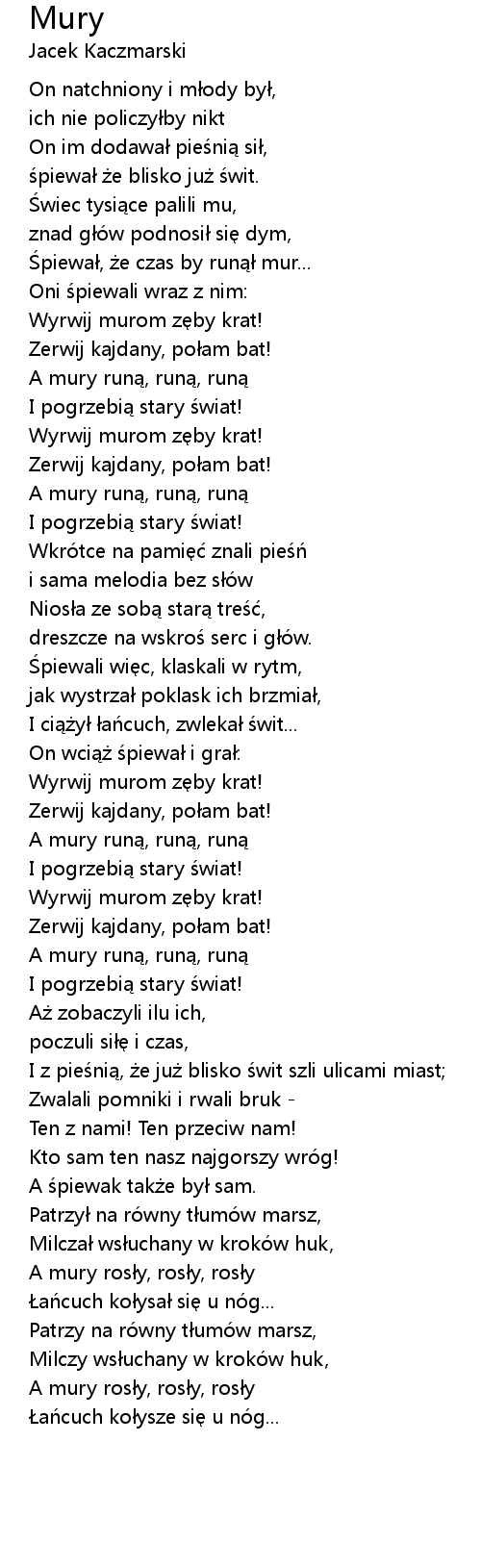 | [00:33.10] | Śpiewał, że czas by runął mur... |