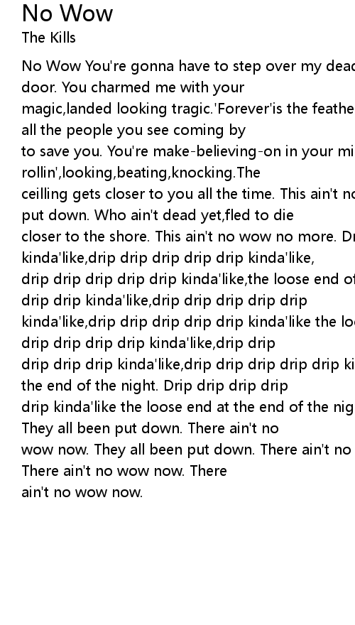 drip kinda'like the loose end at the end of the night. There ain'no wow now. They all been put down. There ain't no |