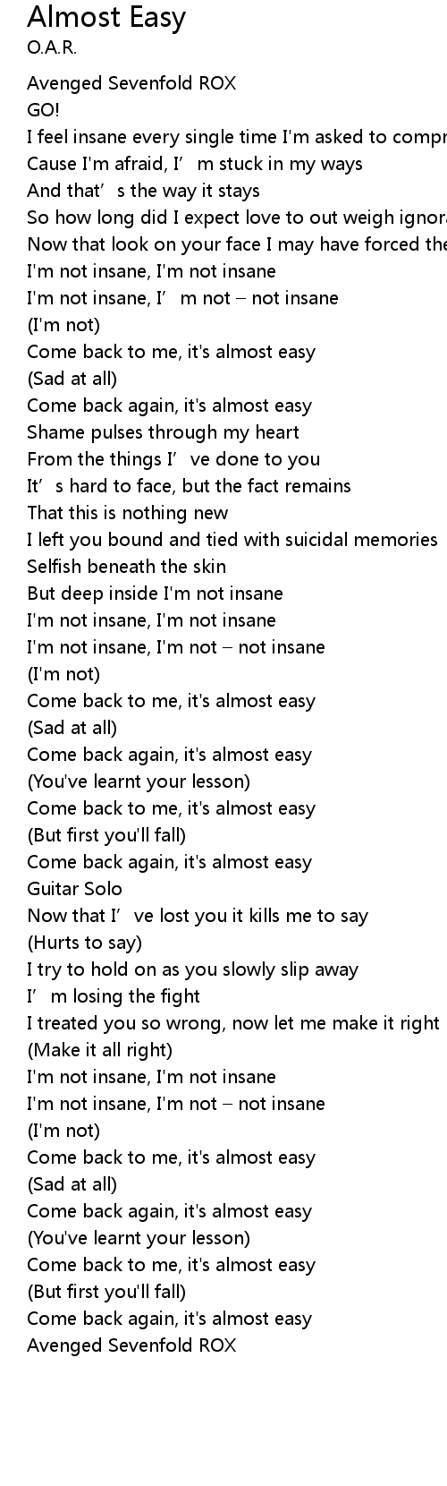 | [01:46.96] | Come back to me, it's almost easy |