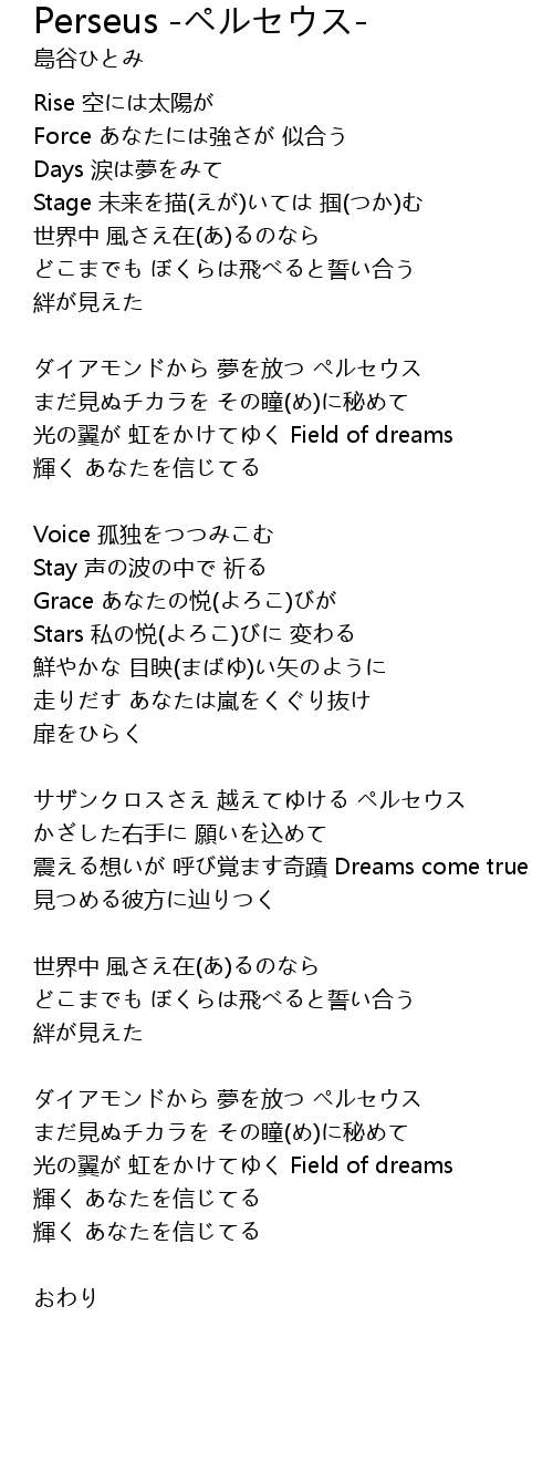 | ダイアモンドから 夢を放つ ペルセウス | |