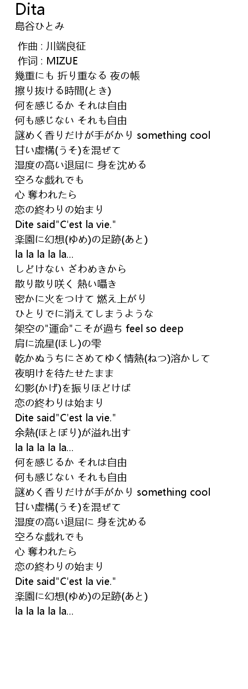 | [01:43.930] | 散り散り咲く 熱い囁き |