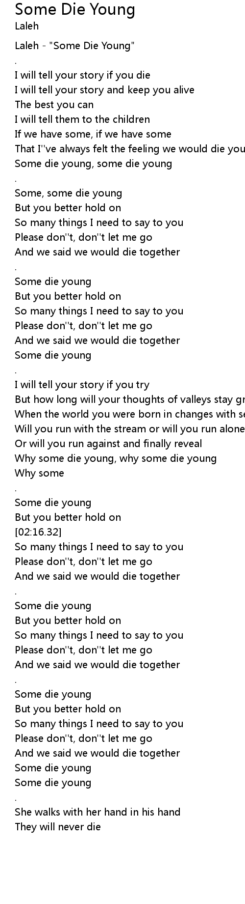 Some die young, some die young |