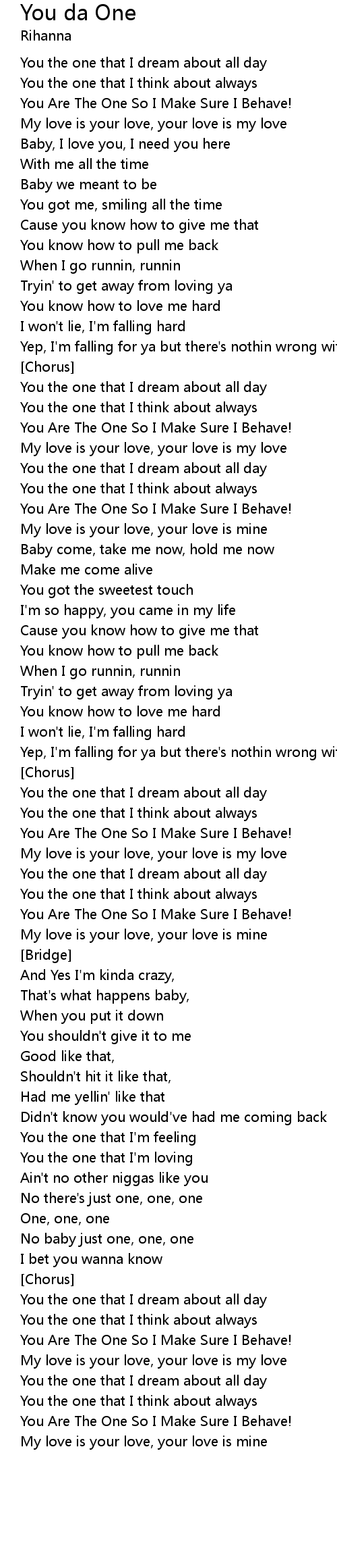 You the one that I'm loving |