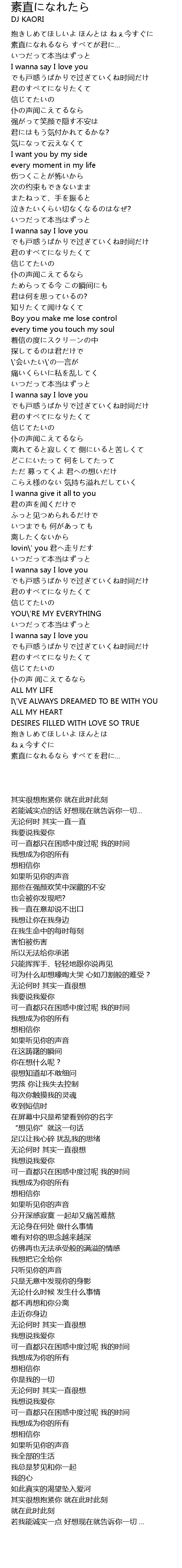 | [04:37.980] | 素直になれるなら すべてを君に... |