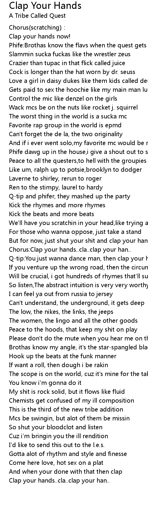 | [01:13.73] | But for now, just shut your shit and clap your hands |