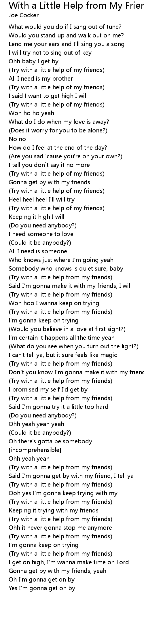 (Try with a little help from my friends) |