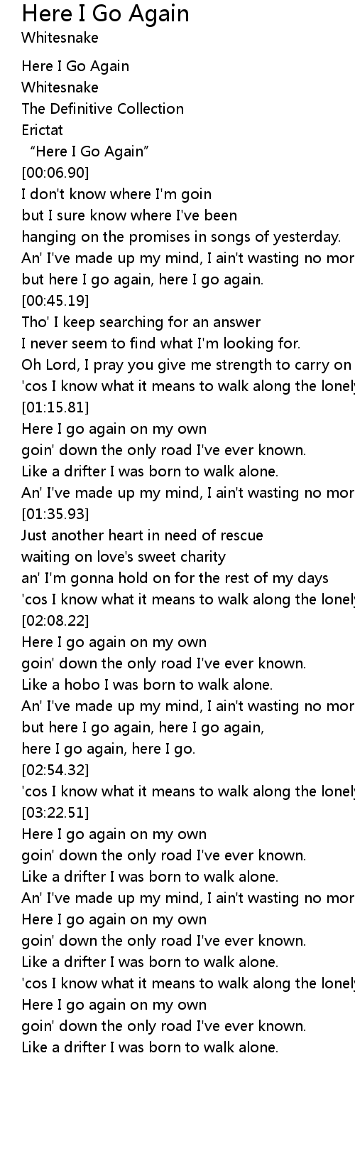 | [00:05.15] | " Here I Go Again" |
