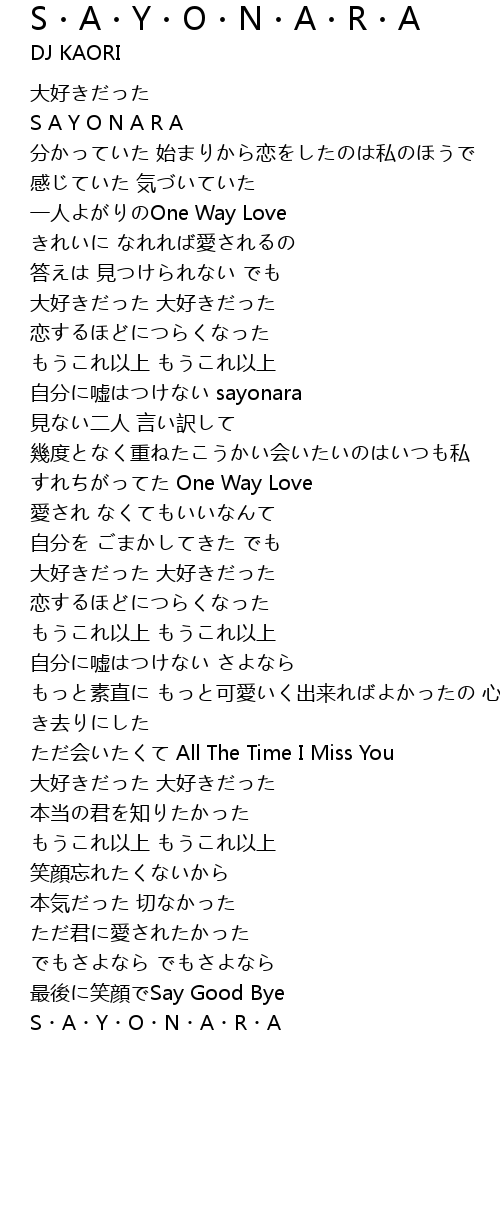 | Song | S・A・Y・O・N・A・R・A |