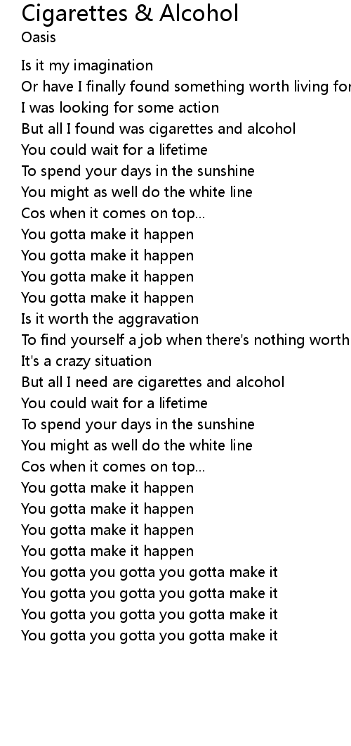 But all I need are cigarettes and alcohol |