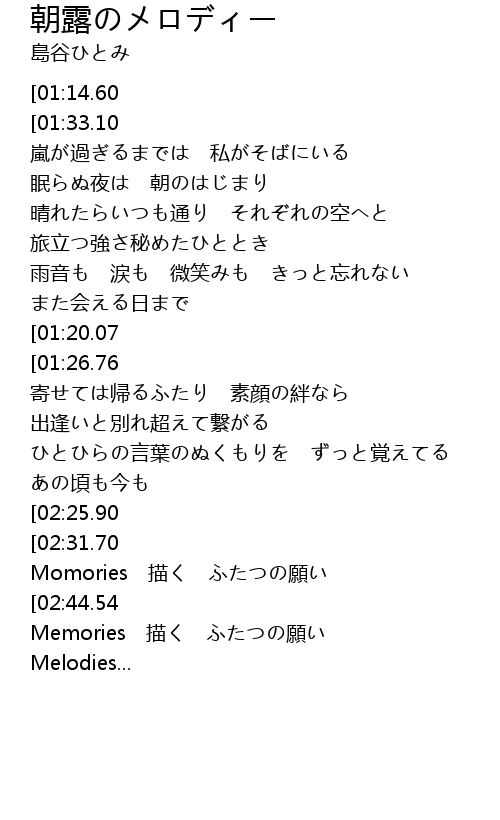 | [03:00.52][01:14.60][00:02.59] | Melodies 時が奏でる調べ |