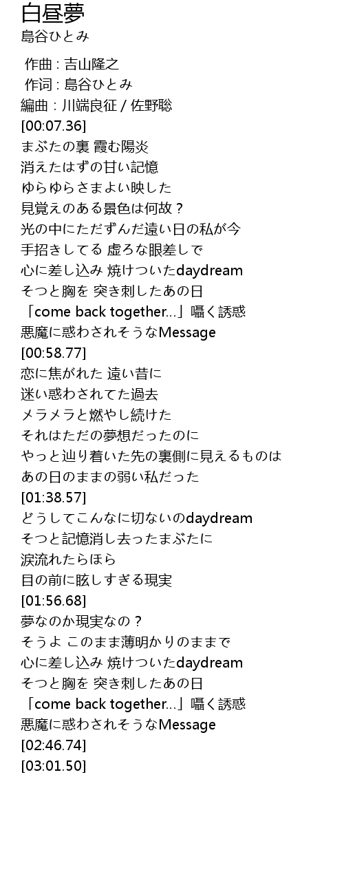 | [01:38.99] | どうしてこんなに切ないのdaydream |
