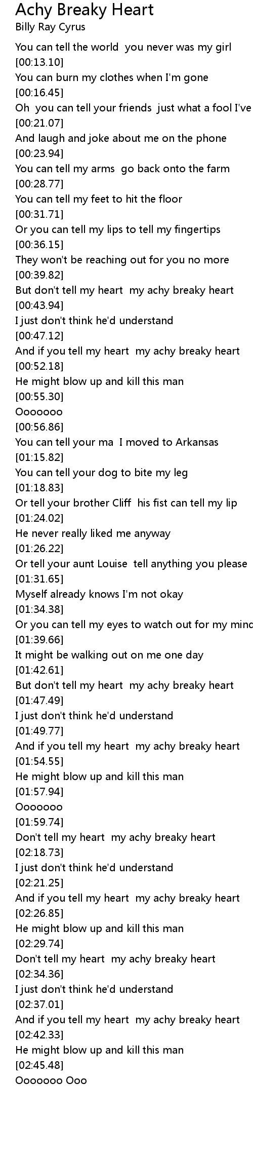 And if you tell my heart my achy breaky heart |