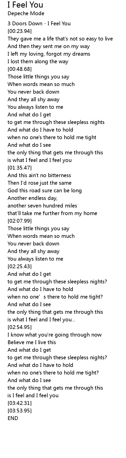 | [00:00.00] | 3 Doors Down - I Feel You |