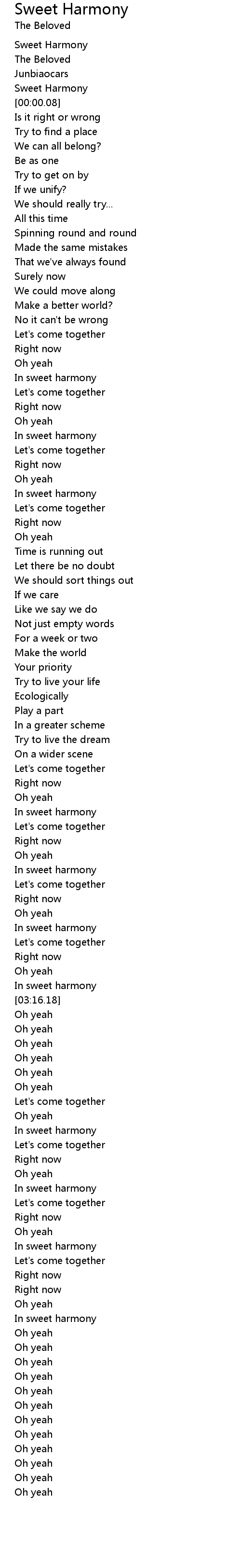 | [00:00.00] | Sweet Harmony |