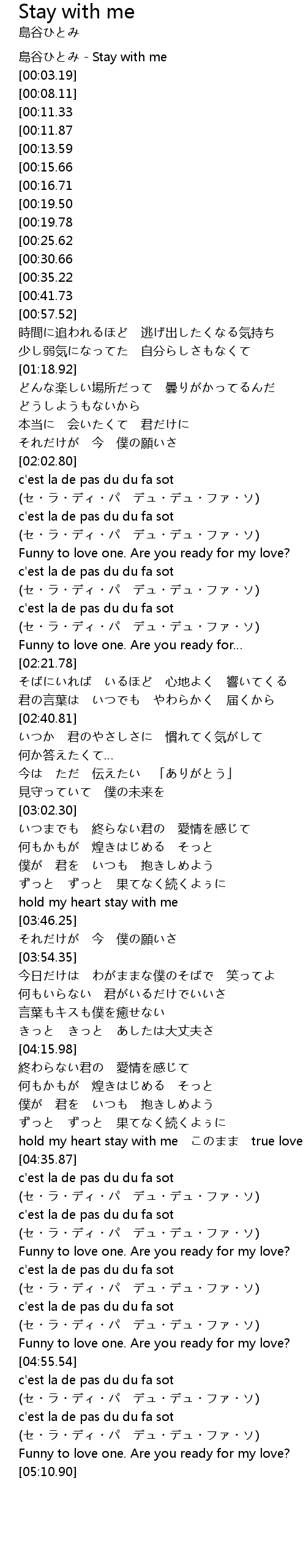 | [00:01.12] | 島谷ひとみ - Stay with me |