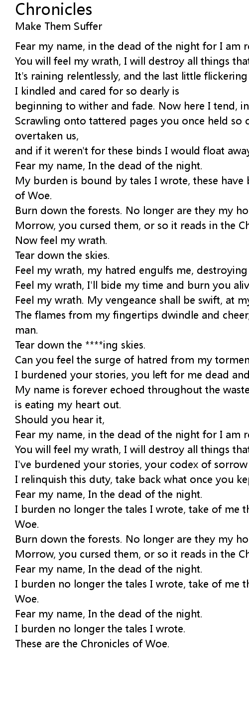 My burden is bound by tales I wrote, these have been the Chronicles of Woe. |
