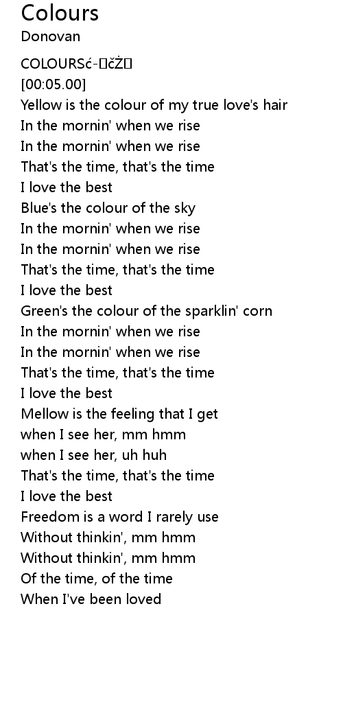 | [00:10.00] | Yellow is the colour of my true love's hair |