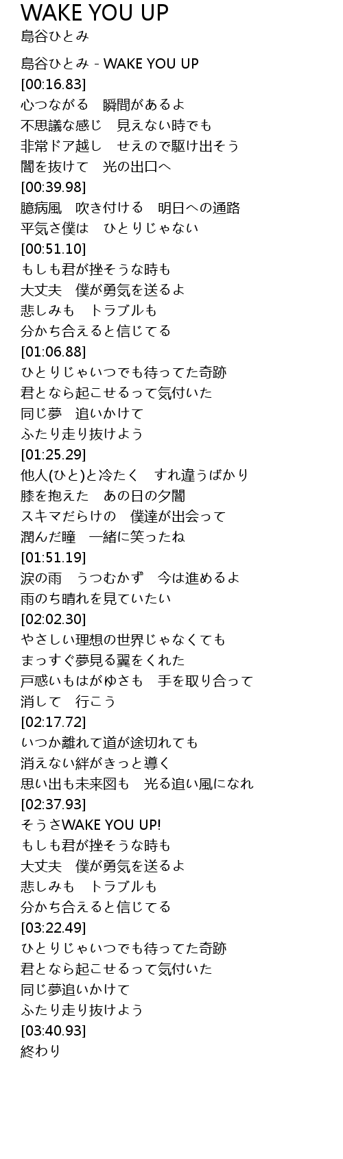 | [00:01.83] | 島谷ひとみ - WAKE YOU UP |