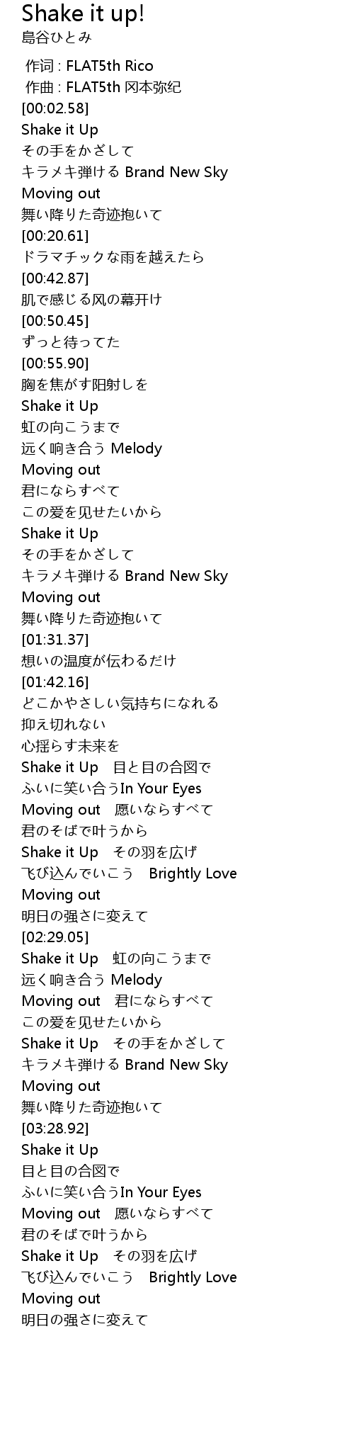| [03:30.63] | Shake it Up |