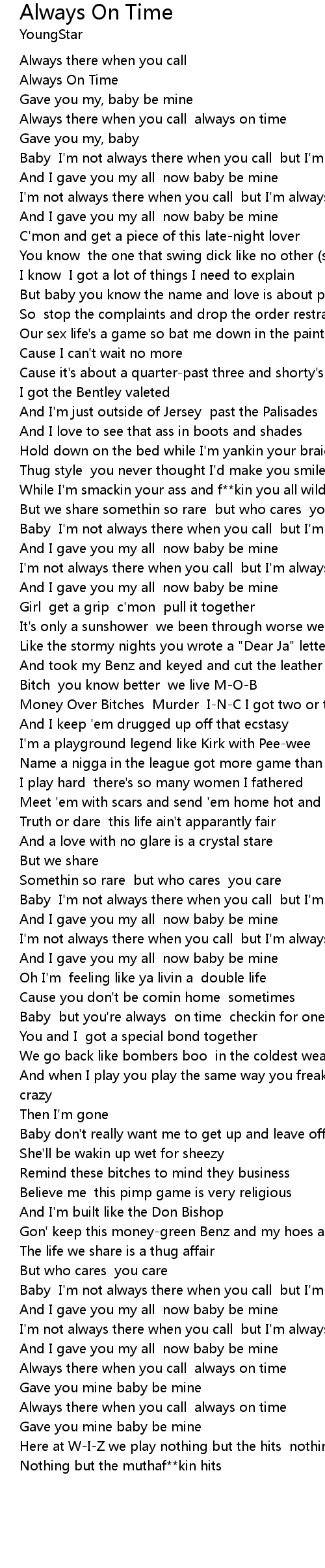 Baby I'm not always there when you call but I'm always on time |
