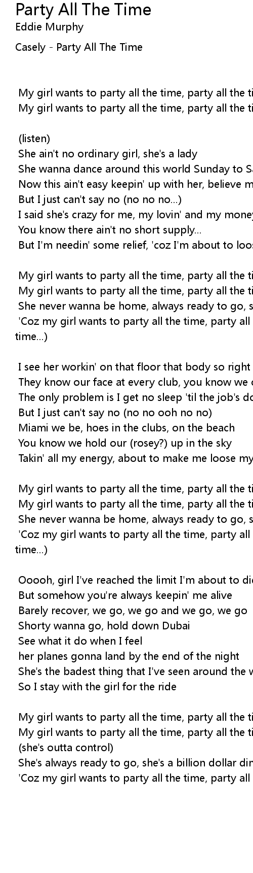 'Coz my girl wants to party all the time, party all the time! (oh yeah!) |
