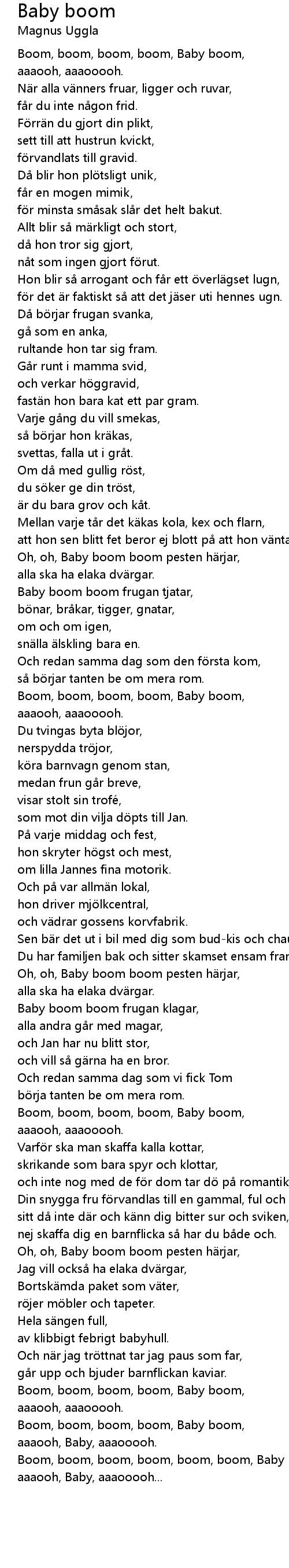 | Oh, oh, Baby boom boom pesten härjar, | |