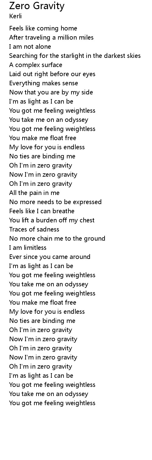 Now I'm in zero gravity |