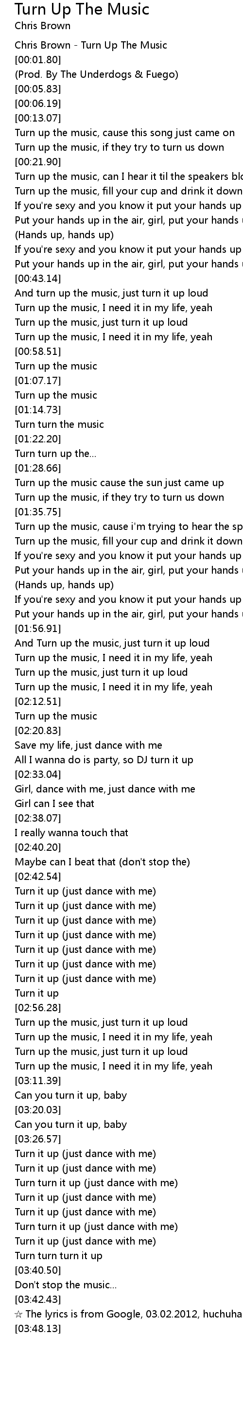 | [00:00.30] | Chris Brown - Turn Up The Music |